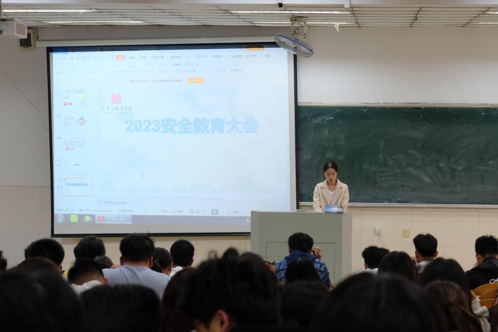于10月30日召开新生安全专题教育会议。会议由2023级辅导员王倩倩主讲,2021级辅导员罗凡、2023级全体新生参加会议。
