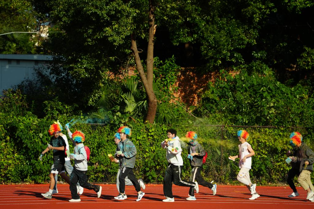情绪折纸的活动是此次活动中最能体现同学们动手能力的一部分。折纸,几乎存在于所有人的童年记忆中,当稚嫩的小手从作业本上爽快地撕下一页纸,折出第一道印,就开始了一场充满幻想的未知旅程。曾经多少只纸青蛙在课桌上欢腾跳跃,多少条纸船被放逐浅溪顺流而下。看似普通的一方天地,却能变幻出无穷无尽的“礼物”,纸飞机们交织成的白色网络构成了童年最美的定格。一张张普通的彩纸经过手指的翻折,成了一个个生动的造型。也将同学们带回了美好的回忆。最后在活动结束前,校心协准备了彩虹跑活动,让同学们一起拥抱彩虹,拥抱完美的自己。