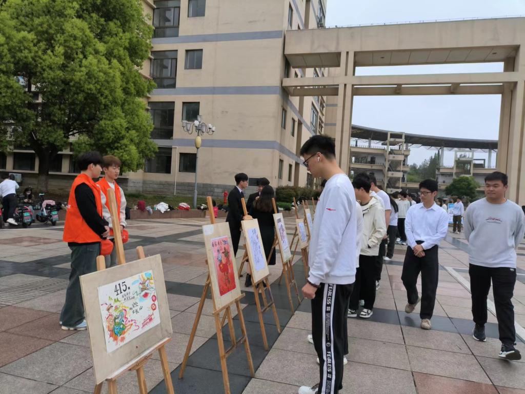 联合校安保部于4月15日上午在阶教广场举办主题绘画作品展。