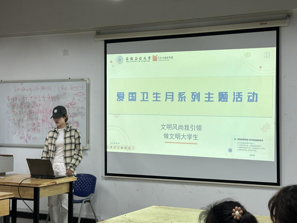 学子组建了一支“爱国卫生月”宣讲先锋队,前往全院各班级开展弘扬爱卫新风尚,争做健康“艺”家人系列主题教育活动。