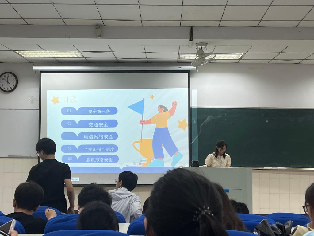 会议主要围绕交通安全、财产安全、人身安全三大模块展开,各年级辅导员从加强安全教育的重要性出发,提醒同学们将安全意识牢牢刻在心中。同时,各年级辅导员结合学校近期工作重点,对学校电瓶车安全隐患进行剖析,鼓励学生共建低碳校园;对学校防诈骗形势进行通报,帮助学生掌握防诈骗技巧;对晚归“零汇报”工作着重提醒,要求学生遵守宿舍管理规定。