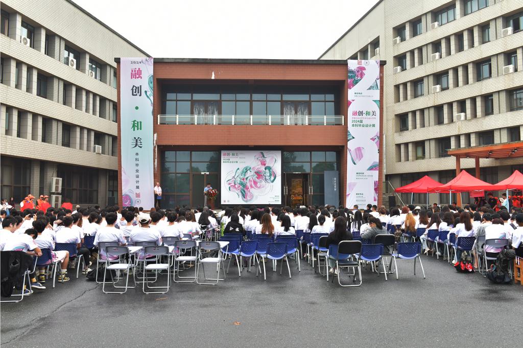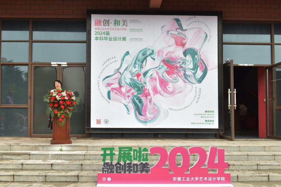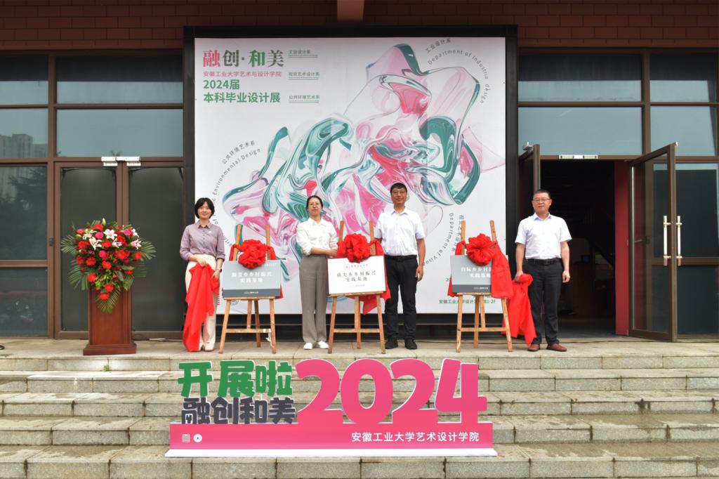 2024届本科生毕业设计作品展在秀山校区设计艺术馆广场盛装开展。校党委常委、副校长顾明言,马鞍山市委宣传部副部长、市文明办主任陈学明,休宁县人民政府副县长李文喜,“当涂民歌”国家级非遗传承人陶小妹,北京小米科技有限公司小米生态链设计部工业设计负责人、院工业设计专业2004届校友谢迎春,南京大美天第文旅投资集团有限公司副总裁孔德银等26家企业家代表出席仪式。宣传部、研究生工作部、团委、教务处、国际交流与合作处、创新创业赌博
