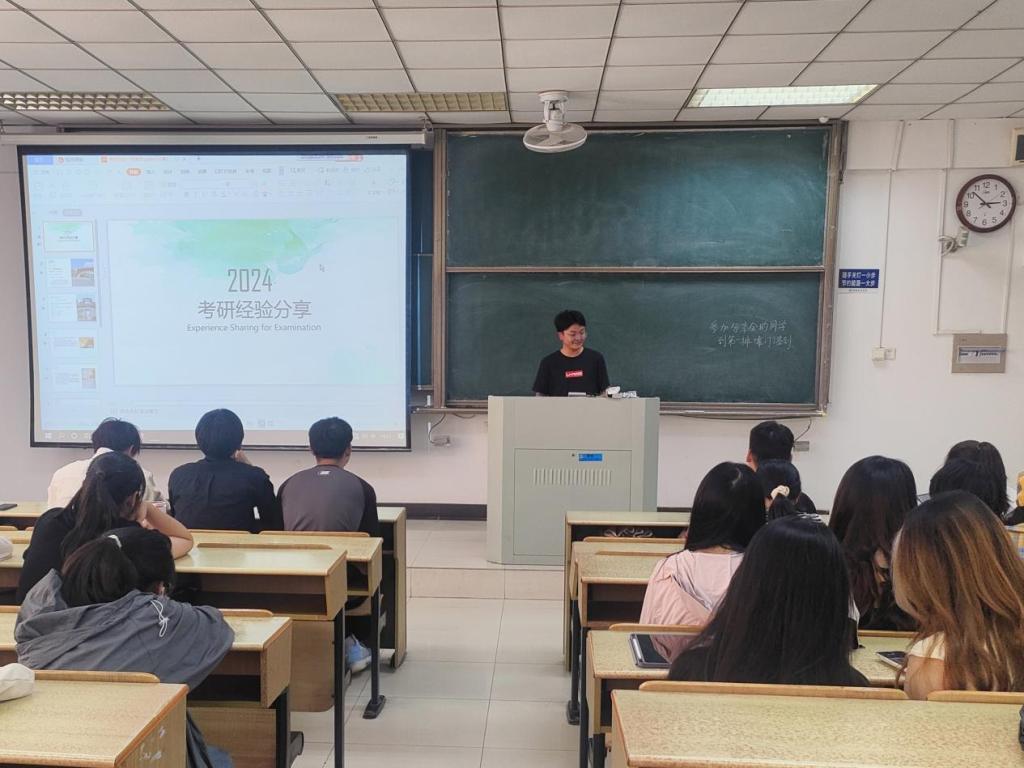 于6月3日下午两点半在教北203举办考研经验分享会,邀请了本院7位优秀学子进行分享,其中有上岸南京信息工程大学、南京林业大学、安徽大学等双一流高校的学子,还有成功申请至美国康奈尔大学的学子。分享主题共分为三类:如何上岸双一流高校、如何成功调剂、如何申请海外高校。2025届部分有意向考研的学子参加此次分享会。