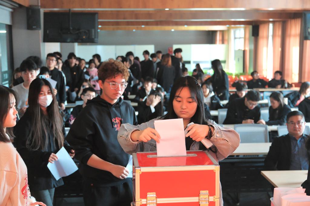 随后进行校学生代表大会代表选举工作。各学生代表根据候选人信息,秉持着认真负责的态度和公平公正的原则投出手中选票。经过票数清点与统计,共产生姜海信、乐月、王思慧13位同学作为学校学生代表大会的代表。