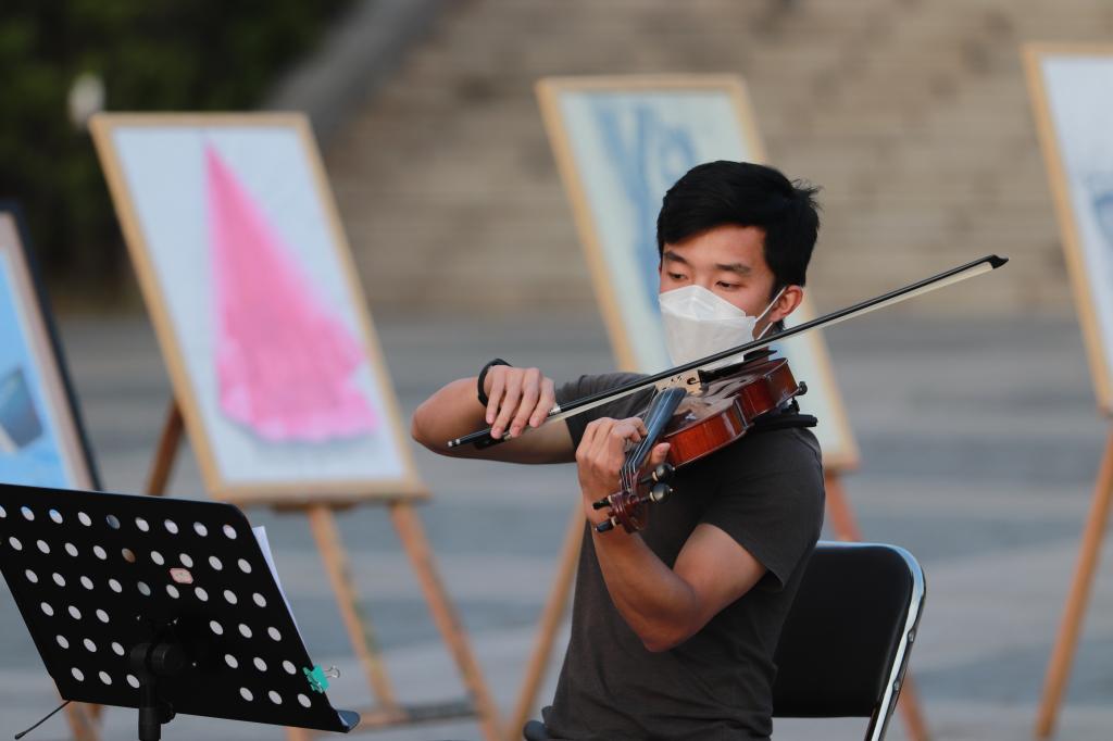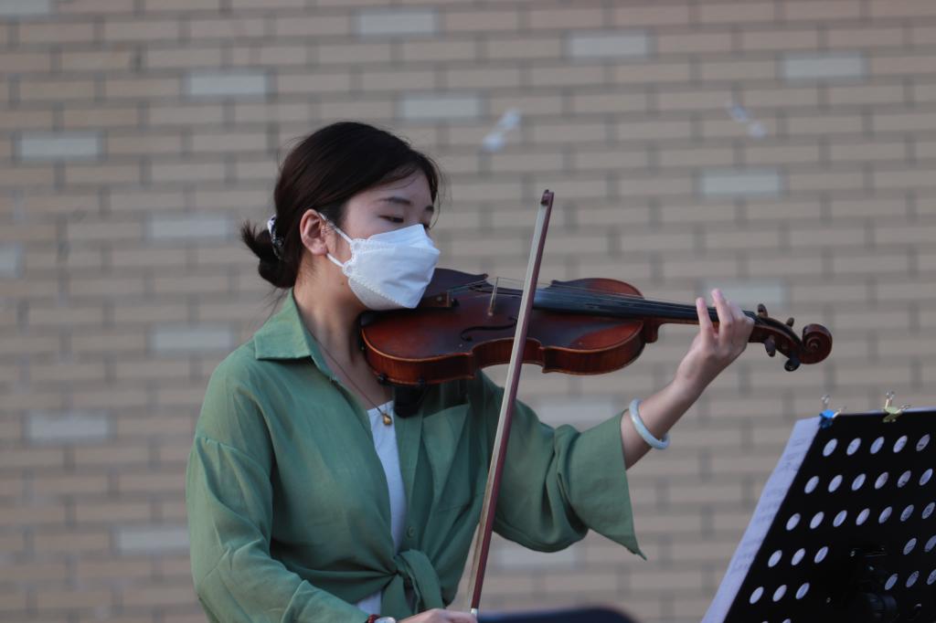 辅导员孙海澄更是带来了一首由前苏联作曲家肖斯塔科维奇作曲的经典小提琴独奏作品《浪漫曲》。当《我和我的祖国》这熟悉的旋律响起时,现场气氛在小提琴声中进入最高潮,音乐会在现场热烈的掌声中缓缓落下帷幕。