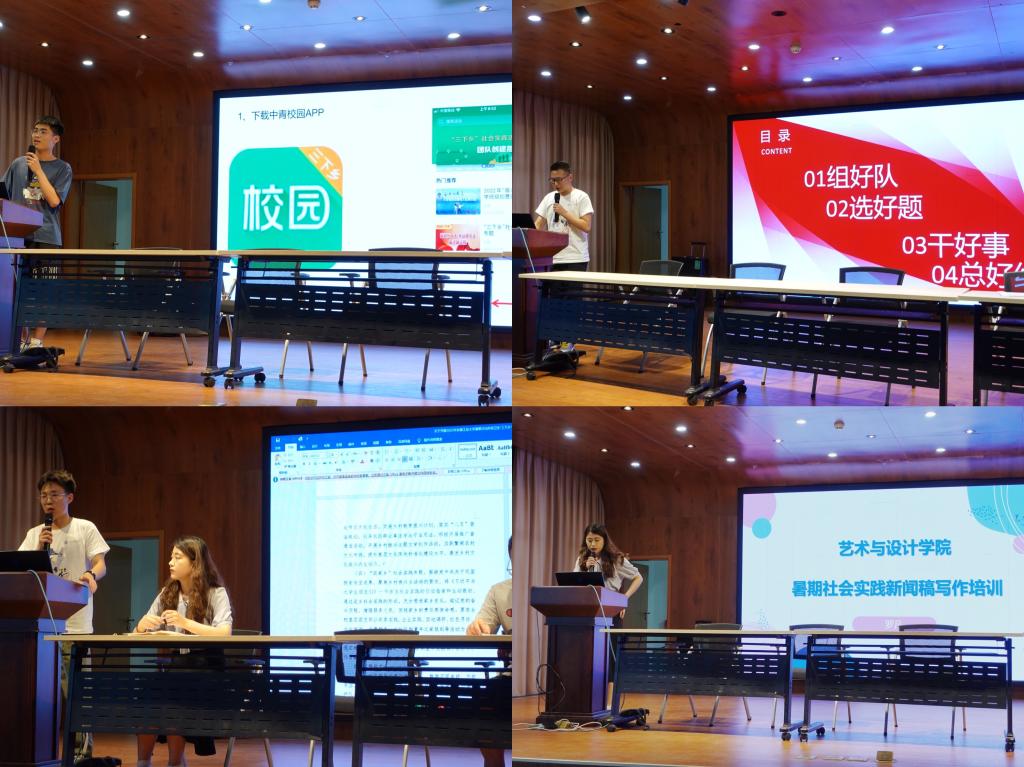 学生会前主席张辉同学分享了暑期社会实践宣传经验,他从细微处分享宣传报道应当注意的地方,如何提高投稿通过率。随后,2021级辅导员罗凡做了暑期社会实践宣传报道培训,她从新闻的基本概念、新闻的写作结构、具体案例分析三个部分,详细讲解如何写好一篇暑期社会实践新闻报道的标题、导语、主体和结尾。