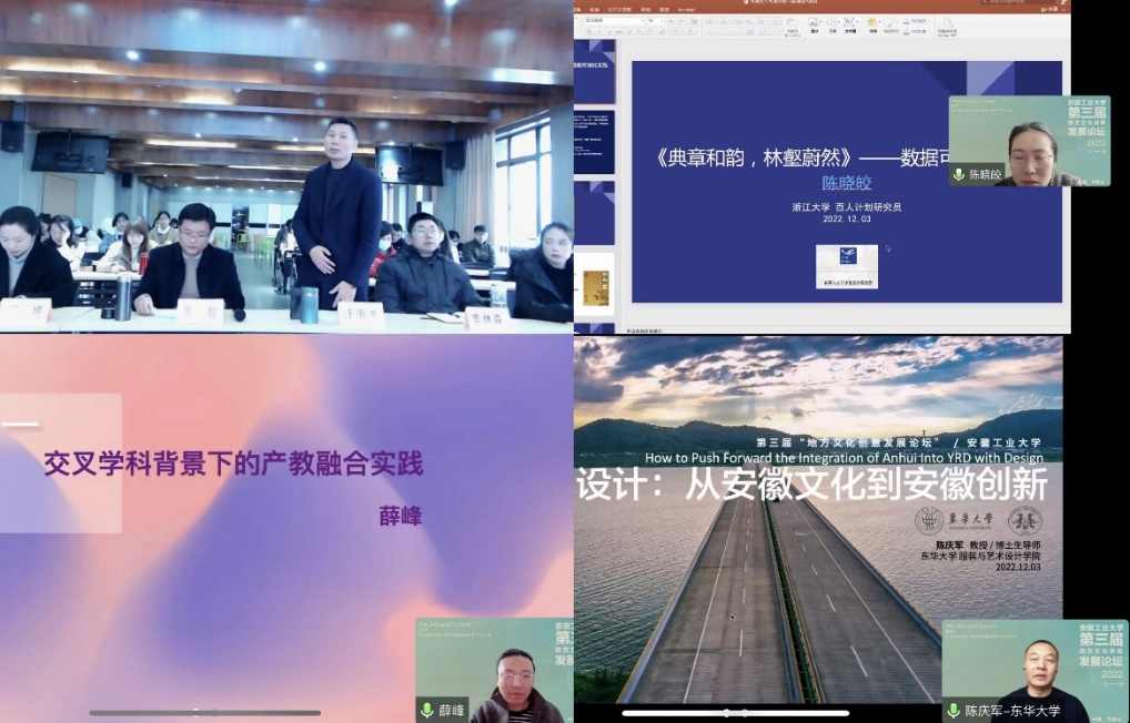 以项目实践创新,用数字化成果实现全民共享的办学理念。陈庆军以《设计:从安徽文化到安徽创新》为题,介绍了安徽身份的设计转化,如何通过设计提升安徽综合竞争力,如何提出安徽方案等观点,同时他介绍了“论文写在大地,设计做在乡村”全国联合毕业设计的案例成果。副院长肖旺群对嘉宾的报告做出了点评和总结,论坛在现场热烈的学术气氛圆满落幕。