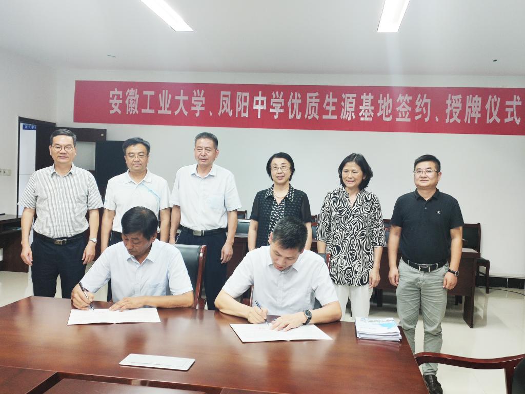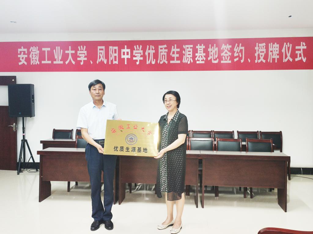 党委常委、副校长顾明言等一行五人前往安徽凤阳中学举行优质生源基地签约授牌仪式。凤阳中学校长陈勋刚、校党总支书记王龙香、副校长高怀宝、万勇等全程陪同。