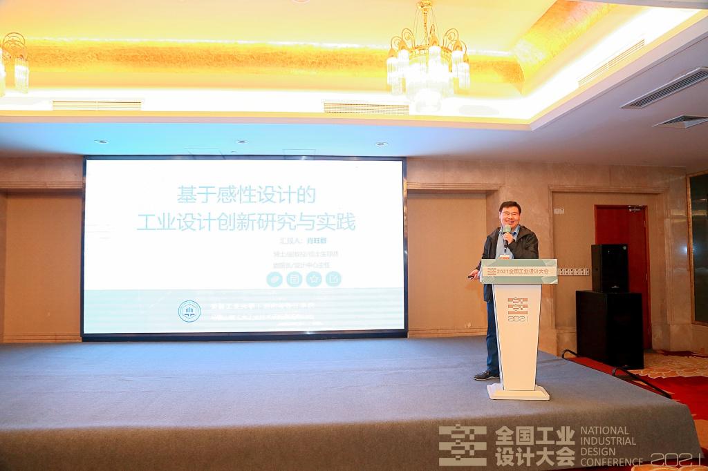 副院长肖旺群受邀在“设计科学”主题论坛作学术报告。他以“基于感性工学的工业设计创新研究与实践”为报告主题,主要分享两大方面内容,一方面是技术创新与设计创新双轮驱动下的产品设计实战案例解析,其中包括牛奶装箱机器人、码垛机器人、六自由度协作机器人、破拆机器人、凿岩钻机、土壤取样钻机、消防机器人等产品从设计到落地的全流程阐释;另一方面是结合生理信号的智能工业机器人感性设计方法研究,工业机器人设计开发研究中,单纯凭借工业设计师的感性思维及创造力进行设计,或者过分强调情感认知领域数据量化研究的介入,都相对片面,展开以上两方面有效结合的研究,探索一种为工业机器人设计创新提供艺术创造力与科学支撑的设计方法。同时,他还将赌博