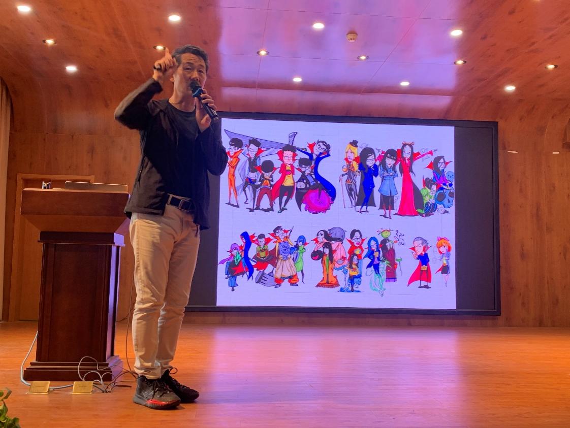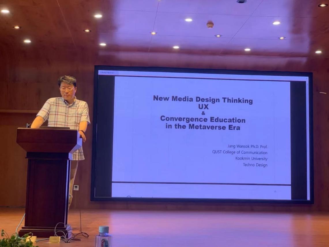 执行院长,博士生导师杨建华教授,青岛科技大学外聘专家,韩国国民大学博士生导师张完硕教授应邀来我校作“动画角色速写与塑造”和“元宇宙时代的新媒体设计思维”两场专题学术报告会。视觉艺术设计系全体教师及20级视传和数媒本科生共同聆听了报告,报告会由视觉艺术设计系主任佘醒主持。