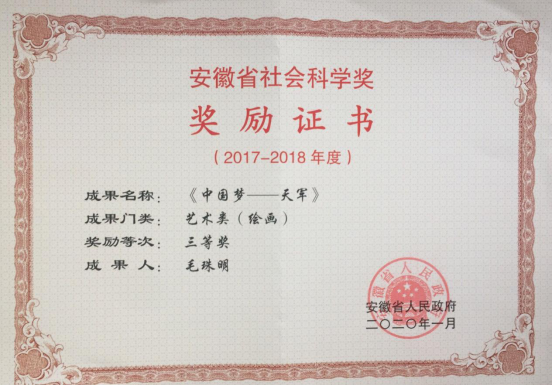 近日,安徽省政府发布2017—2018年度安徽省社会科学奖获奖成果名单,赌博 教师毛珠明绘画作品《中国梦——天军》荣获艺术类三等奖,实现了赌博 科研成果省部级政府奖项的突破。赌博 近年来以艺术学科建设为引领,以高水平科研项目和重大主题性艺术创作为具体抓手,重点扶持一批高质量论文、学术著作、艺术作品等各类社科类成果,着力提升赌博 全方面应用型科研创作水平。