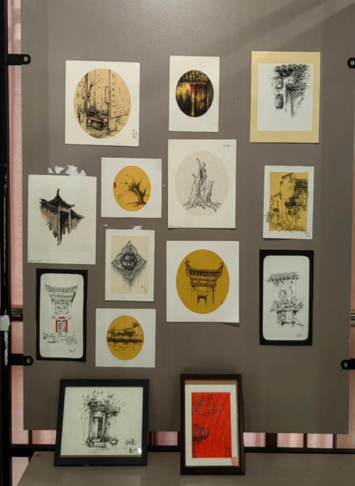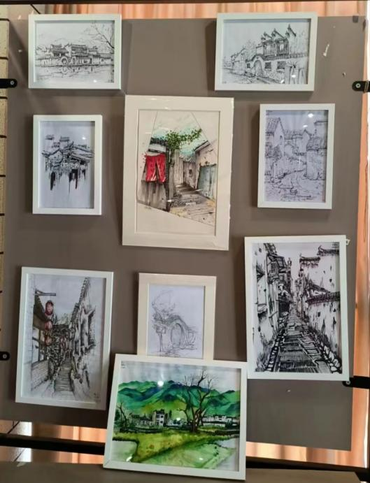 返校后,为切实提高本科生学习的积极性,教学实践中以教师为主导以学生为主体的教育理念,鼓励同学们参与教学过程,培育同学们的竞争意识,同学们在老师的指导下,在原作品基础上反复修改完善,同学们和老师一起遴选出优秀作品,显示同学们写生创作能力,展现徽州文化艺术之美。