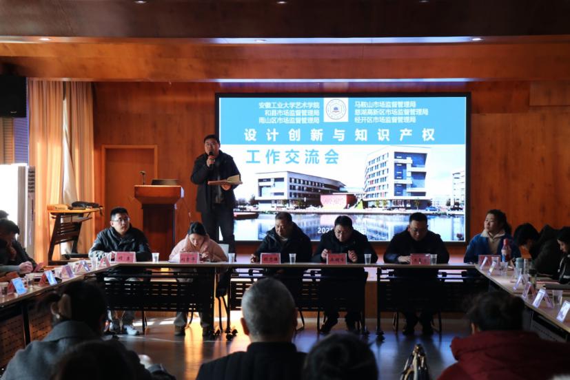 视觉艺术设计系主任佘慧莉主持,参会人员涵盖了马鞍山市知识产权保护中心、慈湖高新区市场监督管理局、和县市场监督管理局、和县文旅集团以及安徽悠之味、首诠知识产权代理等多家企业代表。此外,赌博