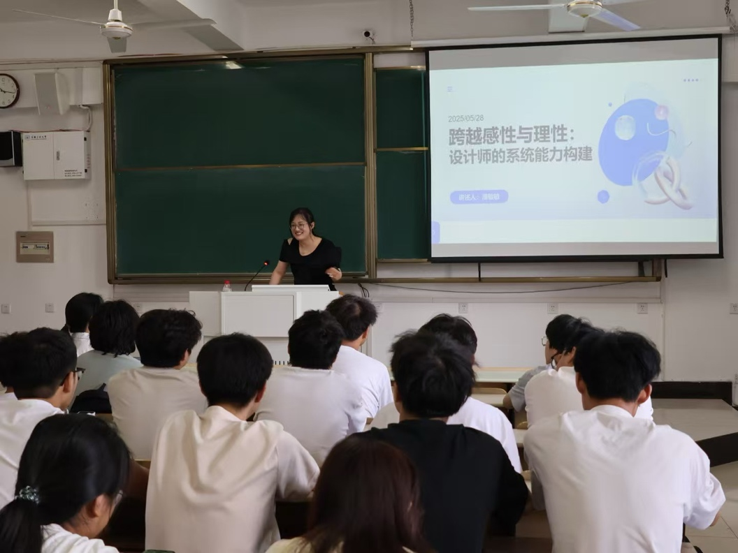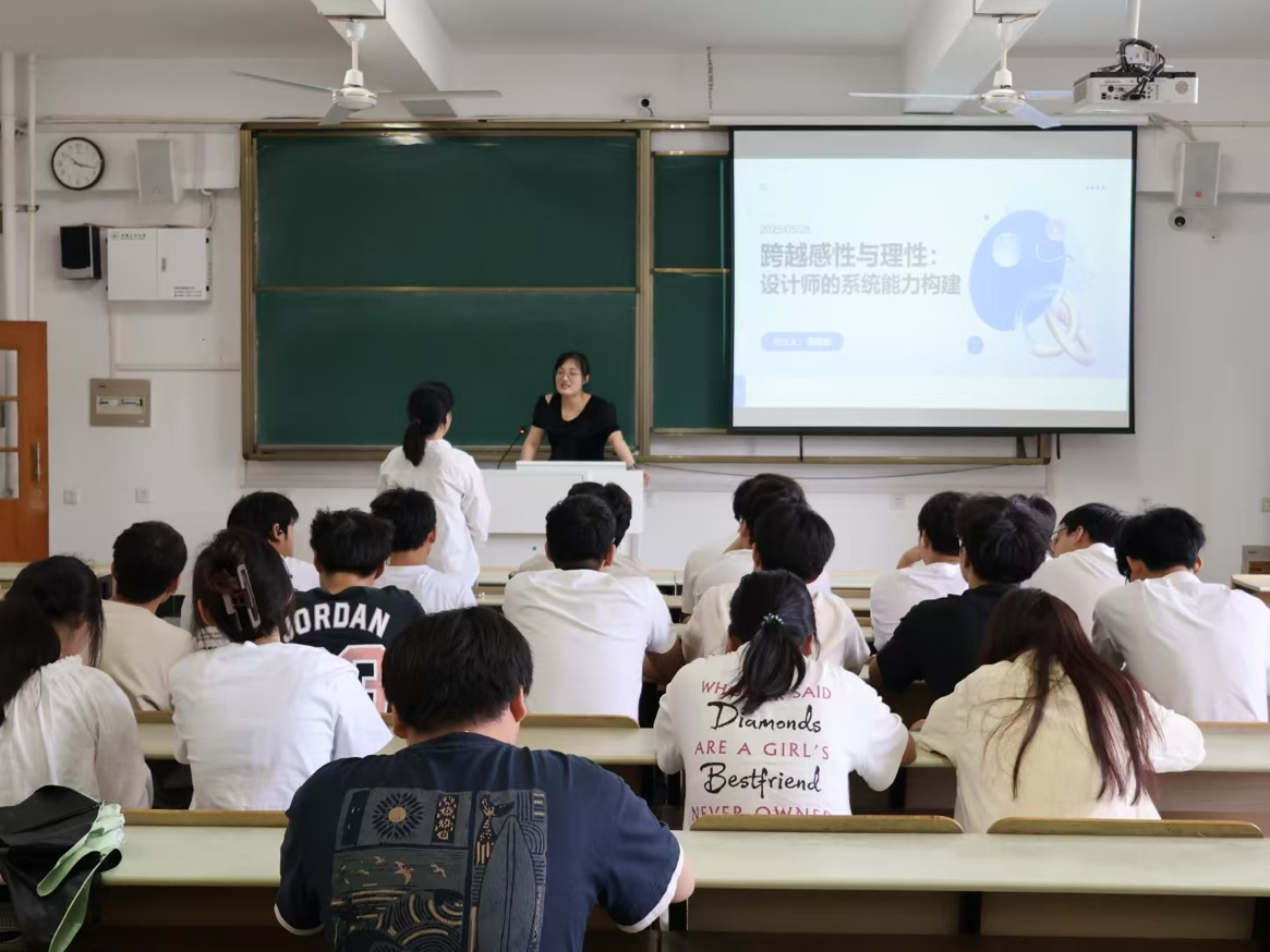 互动环节气氛热烈,同学们围绕“AI时代的设计师定位”“专业技能迭代路径”等前沿话题踊跃提问。潘敏敏结合自身职业发展轨迹给出建议:在校期间应通过竞赛、工作坊等实战项目积累经验图谱;入职初期要建立“T型能力结构”,在深耕专业的同时拓展跨界认知;尤其要把握实习机会,将其作为“职业试炼场”。她特别强调:“实习不仅是技能练兵,更是行业认知的启蒙课。”