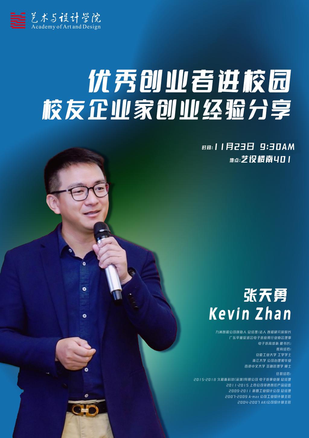 报告题目:优秀创业者进校园——校友企业家创业经验分享报告人:张天勇报告时间:2022年11月23日9:30报告地点:艺设楼401报告对象:赌博 本科生、研究生报告人简介:张天勇,毕业于赌博 工业设计专业,九洲智和公司创始人、总经理、法人,智和研究院院长 ,广东平板促进会电子纸应用行业协会理事,电子纸高球队秘书长。