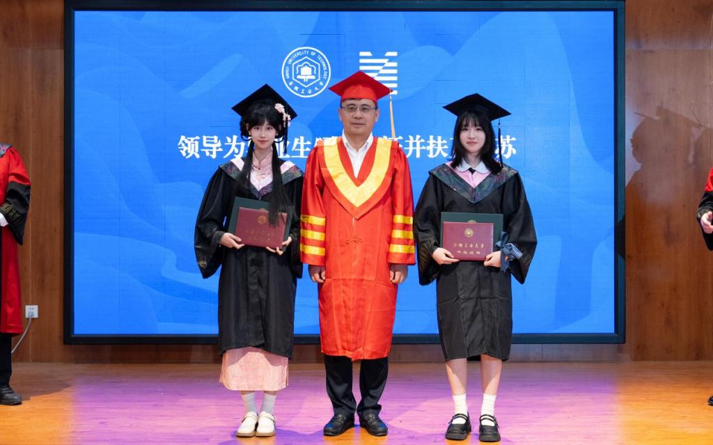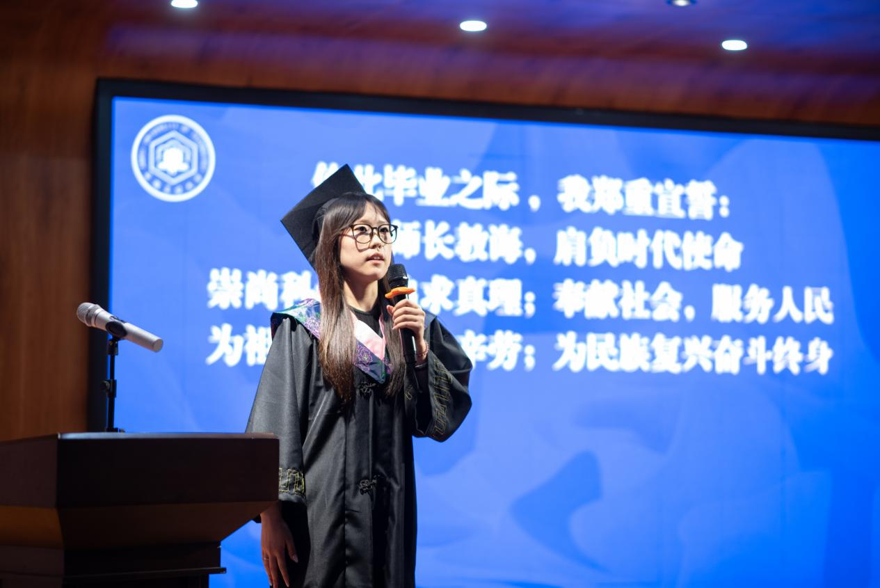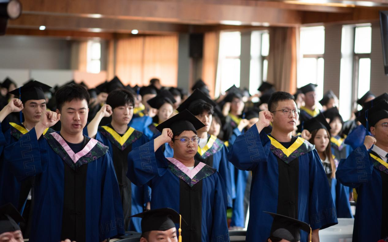 仪式上,副校长郑啸为研究生省优秀毕业生颁发荣誉证书,副院长佘醒宣读学士学位授予决定,副院长宋益民宣读硕士学位授予决定,毕业生代表刘铭璇带领毕业生庄严宣誓。伴随着庄重的乐曲,与会领导和嘉宾为毕业生逐一拨穗正冠、颁发学位证书并合影留念。