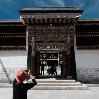 ,108个属寺和八大教区的大型寺院。“拉卜楞”,是藏语“拉章”的变音,意即僧侣的宫殿,实际上它也的确是座宫殿,规模仅次于布达拉宫。拉卜楞寺以治学严谨,寺内学者、活佛众多著称,号称西北地区藏传佛教的高等学府,每年举办七次规模较大的会议,朝圣者终年不断。同学们感受到藏传佛教寺院设计的理念和秩序。拉卜楞寺与周边高山河流融为一体,形成一幅幅美丽的画卷,培养同学们有一双发现美的眼睛和一颗感受美的心。
