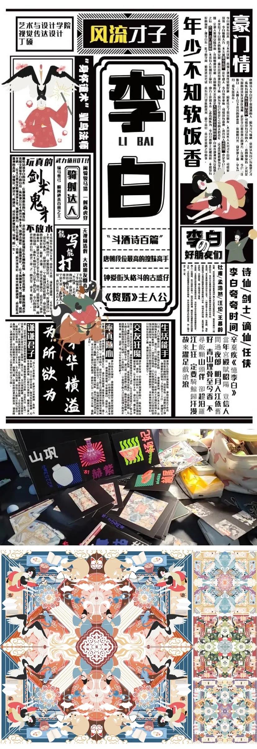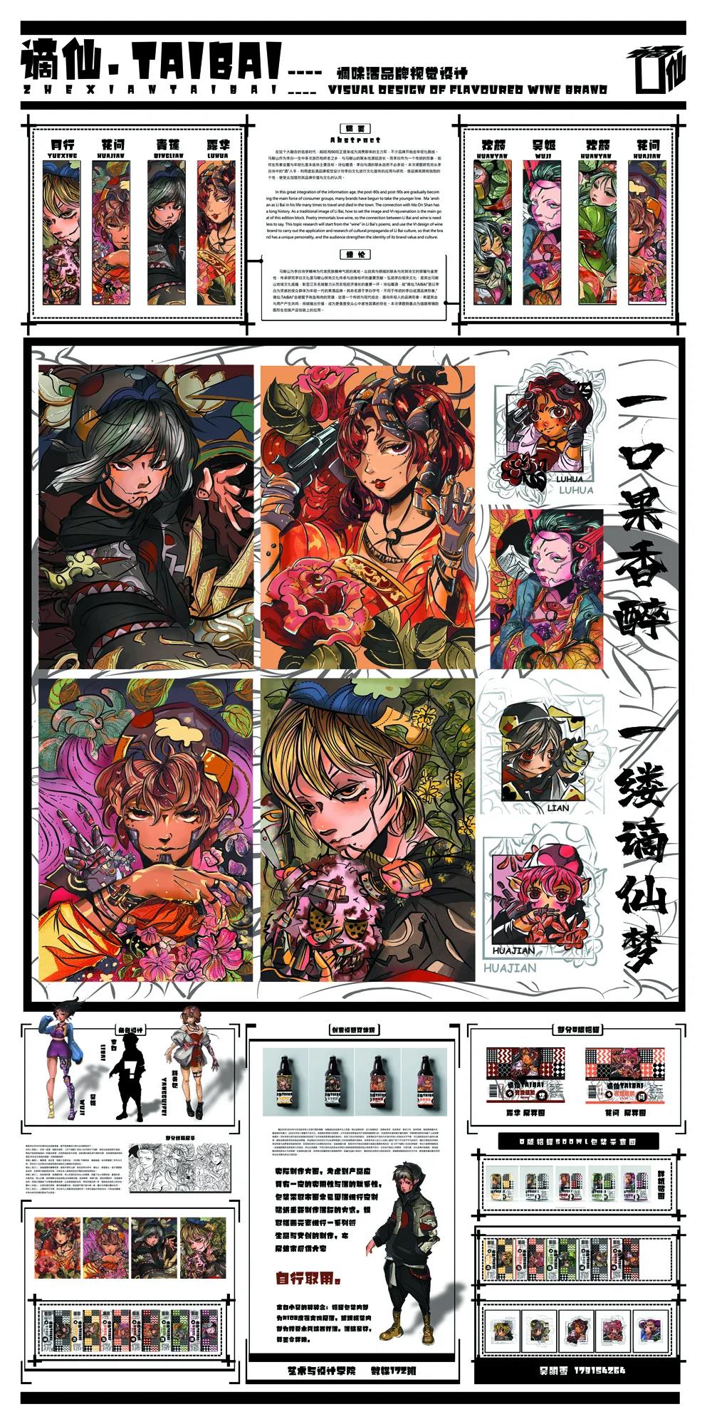 “谪仙”太白品牌价值与文化的认同。作品在传统的文化基础上,加以创新潮流元素,运用视觉设计与H5推广使大众直观的解读李白诗中的酒意象。