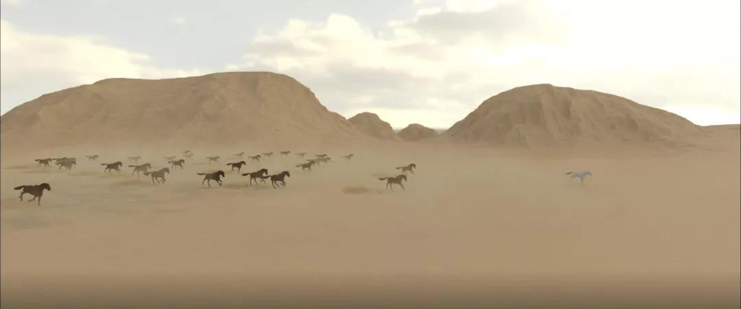 设计说明:《一马当先》主要源于马鞍山非物质文化遗产《马鞍山的传说》,用项羽自刎乌江,其乌骓马化身为马鞍山的典故作为三维概念动画的主要设计来源,画面主要展现了从马鞍山的诞生到对马鞍山未来的展望。