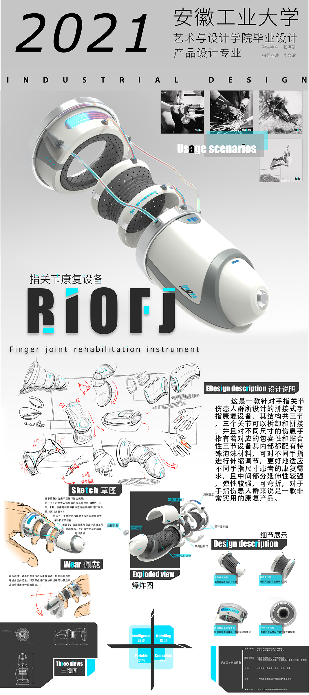 工业设计系有工业设计和产品设计两个专业,工业设计专业为省级一流专业,在人才培养实施过程中围绕新时期教育教学发展理念,以学生为中心,突出学生能力培养以及毕业生输出质量。本次毕业设计内容涵盖机械装备、生活家居、智能电器三大方向。机械装备方向关注5G智能时代背景下的医疗救援,智能仓储及运输等领域,以工程技术为依托,创新产品造型与人机交互方式;生活家居方向以新生代视角讲述生活,主张设计追寻自然美学,倡导设计回归生活本质;智能电器方向聚焦智慧城市,重新定义后疫情时代下的医疗、出行、社区治理,重视信息时代下设计中人的智慧参与和可持续发展。