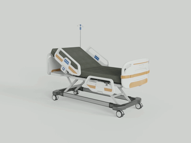 设计说明:产品整体造型采用流线型外观,柔和流畅的曲线给人温暖、亲和的感受。握把处设计结合人机工程学理论实践,稳定的同时给予患者与护理人员最佳的体验感。整体系统设计结合智能化,对患者信息进行采集,数据共享,让家人实时了解患者健康状况。对造型、色彩、功能的设计让患者在长期的康复护理的过程中,情感上得到最大的安慰与关怀。