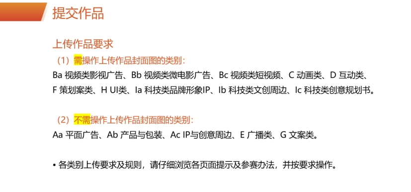 6.上传作品封面图:提交作品时需同时上传作品封面缩略图便于评审(平面类、广播类、文案类除外)。