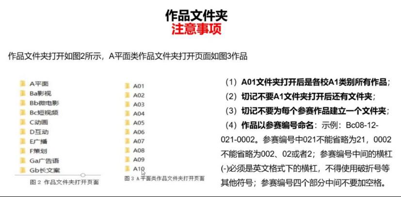 第5步:线下提交:与网上提交的作品要求相同。作品文件(系统已生成参赛编号的正式作品)及参赛报名表的电子版报送至学校,文件均以参赛编号命名。无需打印参赛报名表及承诺书。